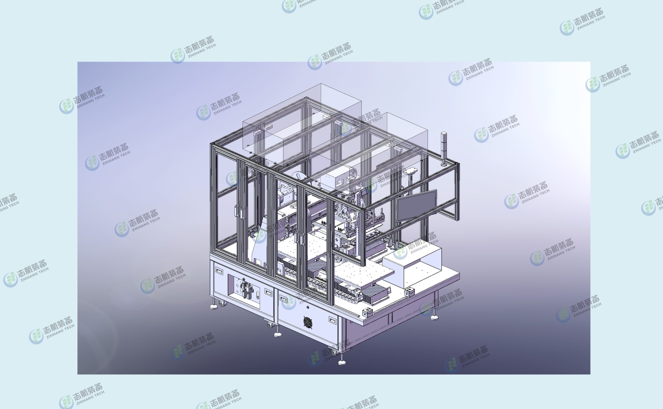 该设备主要应用与新能源汽车屏幕玻璃盖板、平板电脑玻璃盖板等产品的1:1保护膜的高精度无气泡贴合。工作模式为半自动模式,也可以将两台机器连线升级为全自动双面贴膜设备,可以对接自动收料机或者下游设备上料平台。